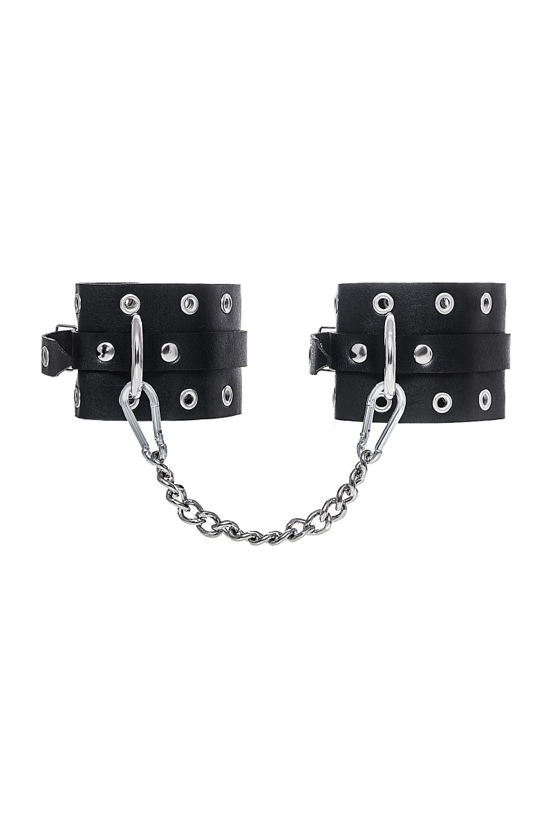 Эти однослойные кожаные оковы с контрастной строчкой красного цвета могут стать стильным аксессуаром, а могут послужить вашим целям по своему прямому назначению. Частичное обездвиживание и невозможность двигать руками или ногами дают вам полную власть над партнером – взрослые игры для взрослых. Наличие двух колец и карабинов, соединенных между собой кожаным ремешком, позволяет использовать изделие как раздельно – аксессуар-манжеты, так и как оковы для фиксации. К широким металлическим кольцам также можно присоединить и другие аксессуары при помощи карабинов. Благодаря универсальному размеру оковы могут использоваться и мужчинами, и женщинами. Размер легко регулируется с помощью металлических пряжек, органично вписывающихся в общий стиль. Длина манжет - 25 см, ширина - 6,5 см. Длина сцепки - 17 см.
