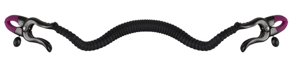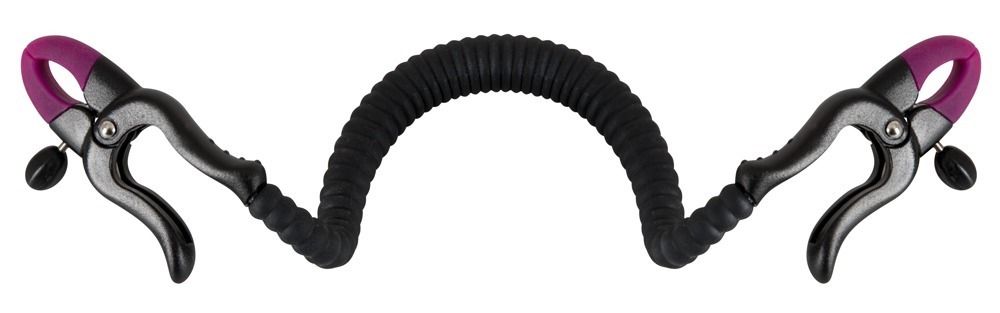 Зажим на половые губы с гибкой перемычкой для G-стимуляции. Под силиконовой оболочкой скрывается металлический хребет.