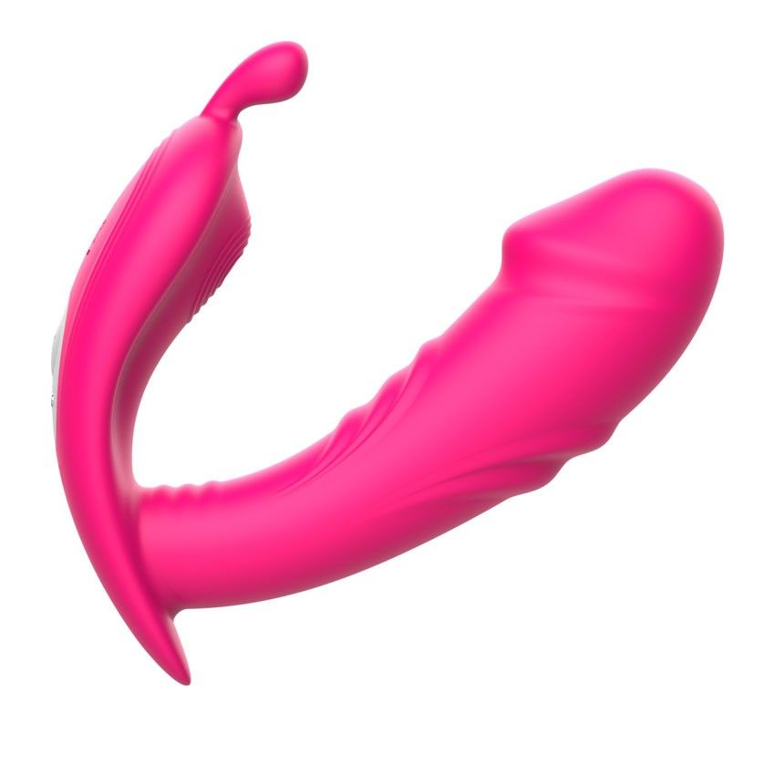 Розовый вибромассажёр с пультом дистанционного управления. 10 режимов вибрации. Рабочая длина - 11,8 см.
