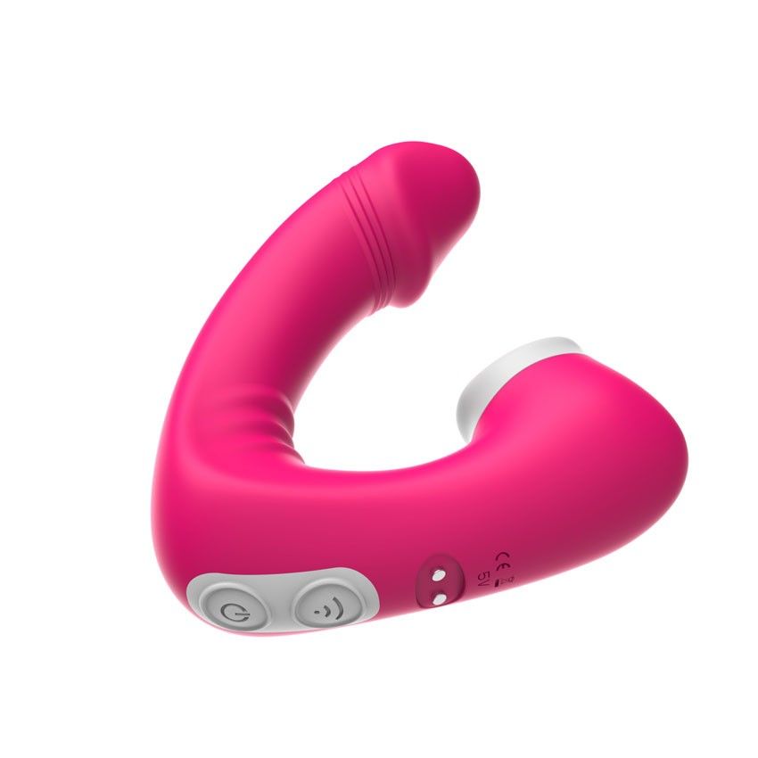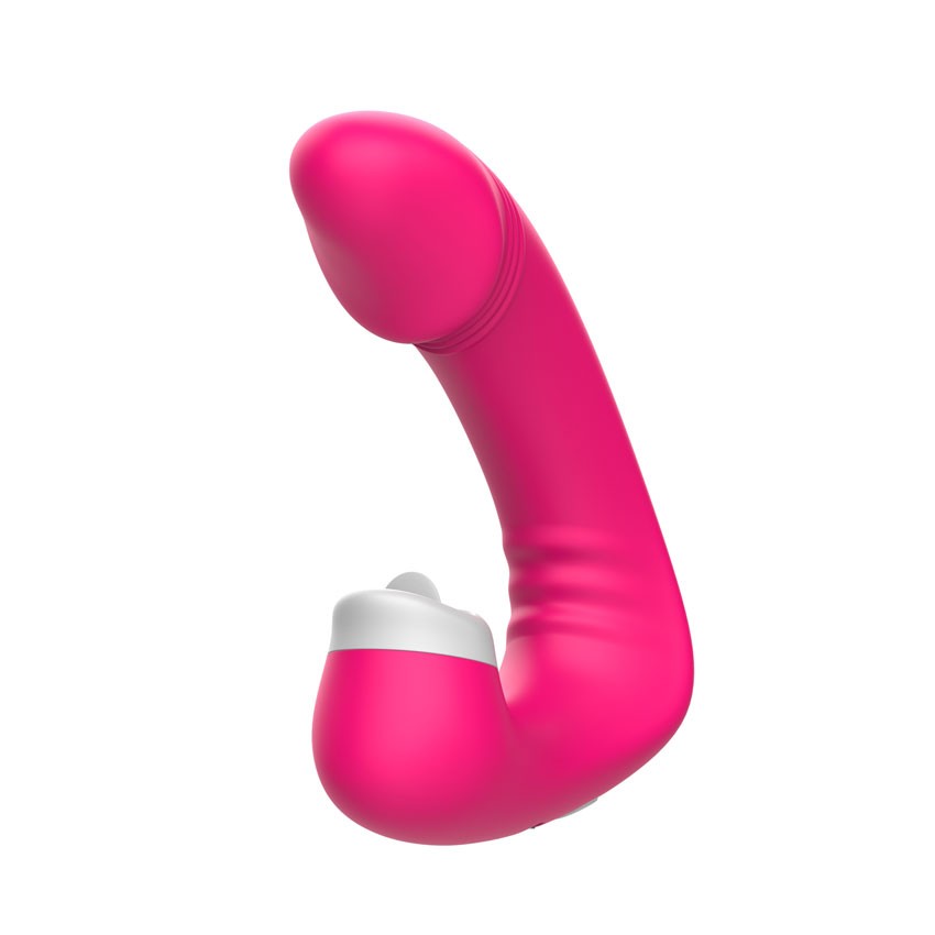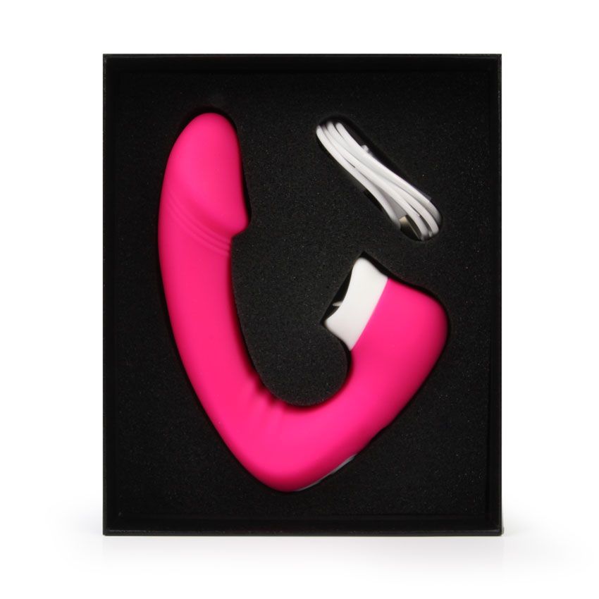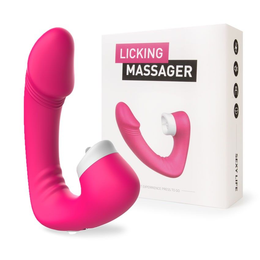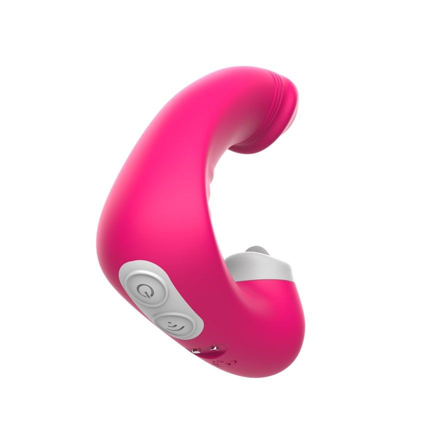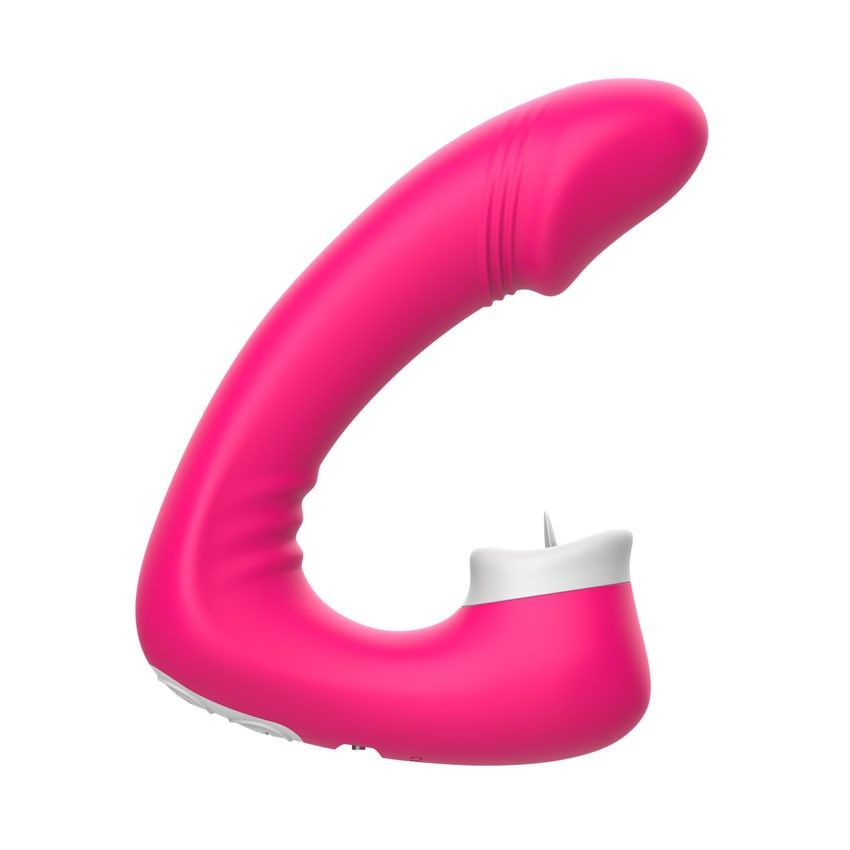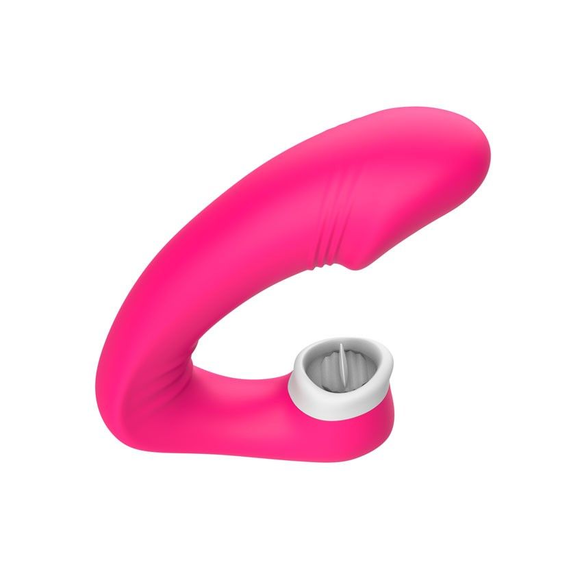 Розовый вибромассажёр с клиторальной стимуляцией. 9 режимов вибрации, 3 режима движения язычка. Рабочая длина - 11 см.